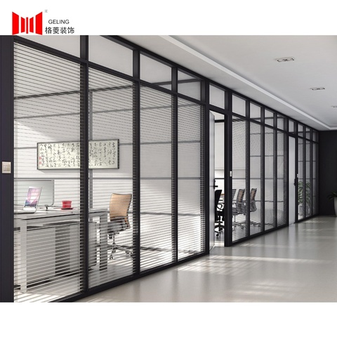 80 مللي متر حواجز مكتبية الصناعية الألومنيوم رخيصة زجاج مقسى مزدوج مع أعمى الجدران لغرفة الاجتماع